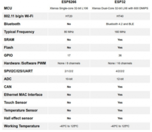 ESP32 dan ESP8266 merupakan suatu module chip yang digunakan sebagai WIFi bridge untuk mikrokontroler lain agar dapat terhubung ke jaringan internet. Pada awalnya, ESP8266 hanya bisa dijalankan menggunakan perintah AT Command melalui komunikasi serial. Kemudian dilakukan pengembangan kembali dimana akhirnya ESP8266 dapat diprogram dengan menggunakan Arduino IDE seperti yang akan kita lakukan pada proyek kita kali ini. Lalu perbedaan ESP32 dan ESP8266 tuh apa ya? Nah sebenarnya, ESP32 merupakan versi peningkatan dari ESP8266, akan tetapi cara kerja keduanya hampir serupa. Untuk lebih jelasnya, tabel perbedaan spesifikasi keduanya dapat dilihat sebagai berikut: